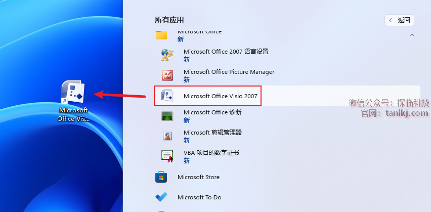 找到软件【Microsoft Office Visio 2007】,将其拖至桌面创建桌面快捷方式。