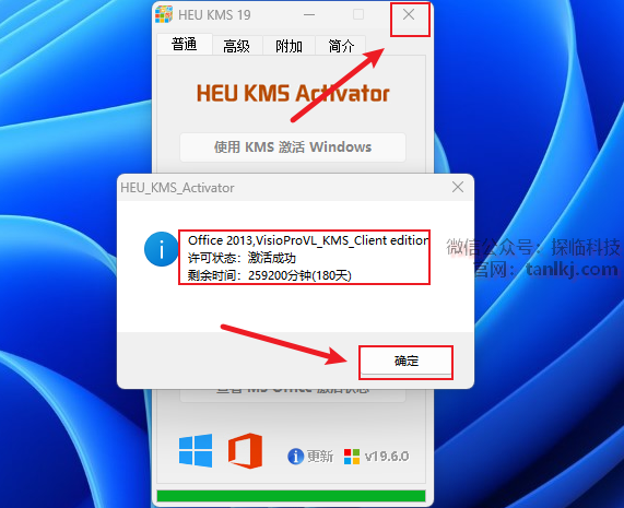 提示激活成功后,点击【确定】,点击右上角的【X】关闭程序。