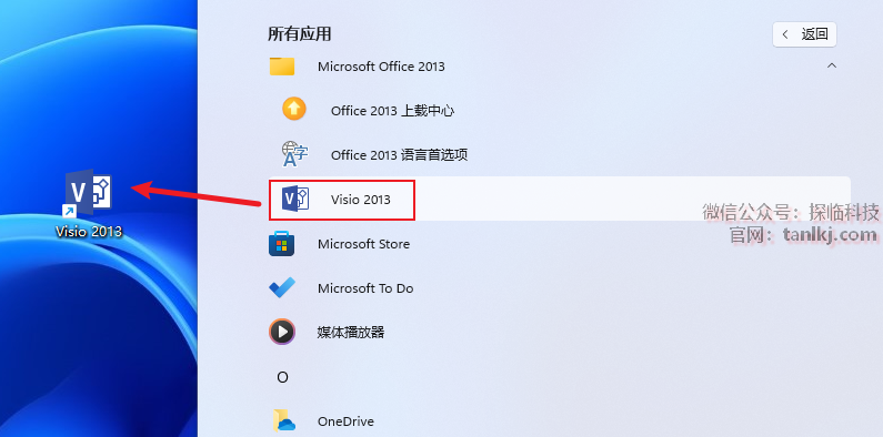 找到程序【Visio 2013】,将其拖至桌面创建桌面快捷方式。
