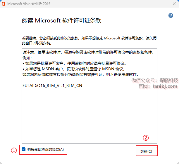 ①勾选【我接受此协议的条框】;