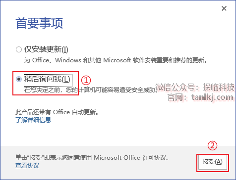 ①勾选【稍后询问我】选项;