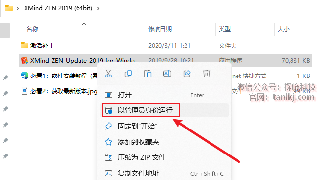 打开解压后的文件夹,右键安装程序【XMind-ZEN-Update…】,点击【以管理员身份运行】。