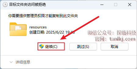 如果出现提示权限弹框,直接点击【继续】。