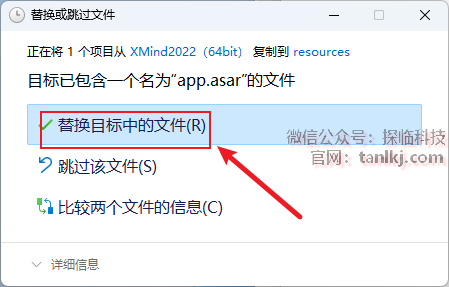 点击【替换目标中的文件】。