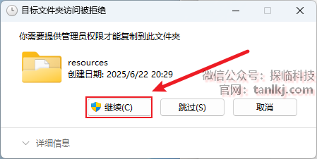 如果提示权限弹窗,直接点击【继续】即可。