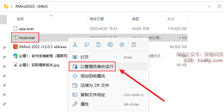 打开解压后的文件夹,右键安装程序【XMind 2022 v12.0.3 x64】,点击【以管理员身份运行】。