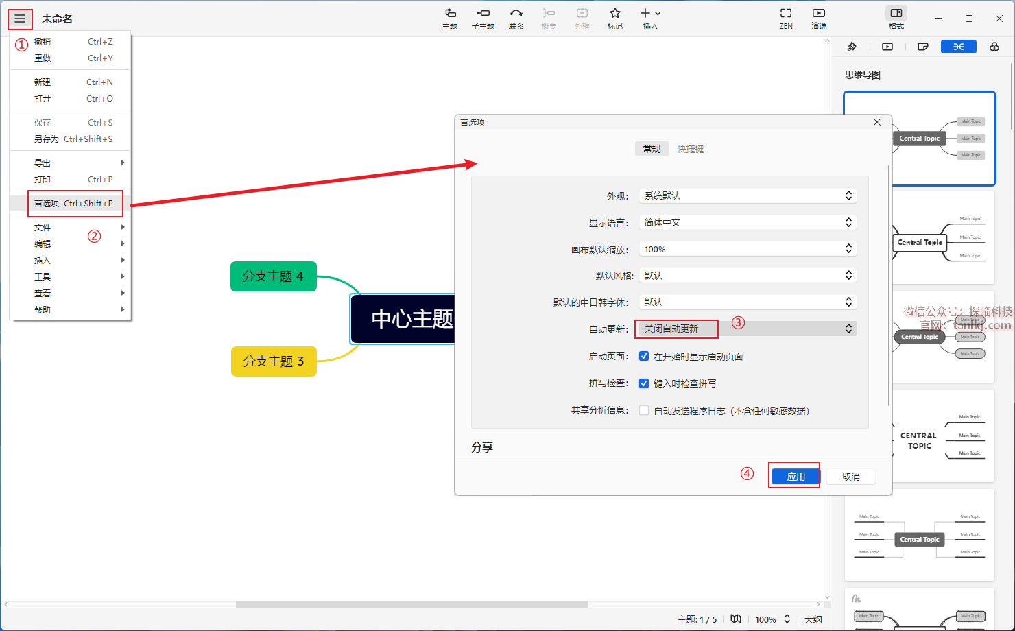③自动更新选项中选择【关闭自动更新】;