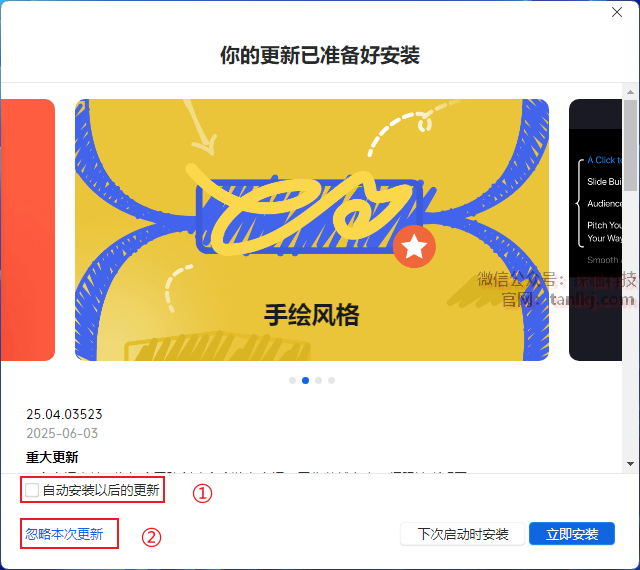 ②忽略本次更新。