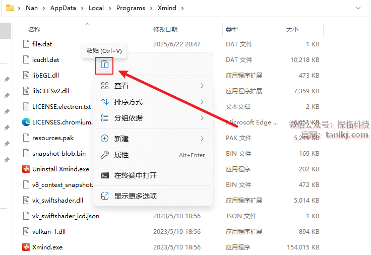 在当前文件夹内,粘贴刚刚复制的文件。