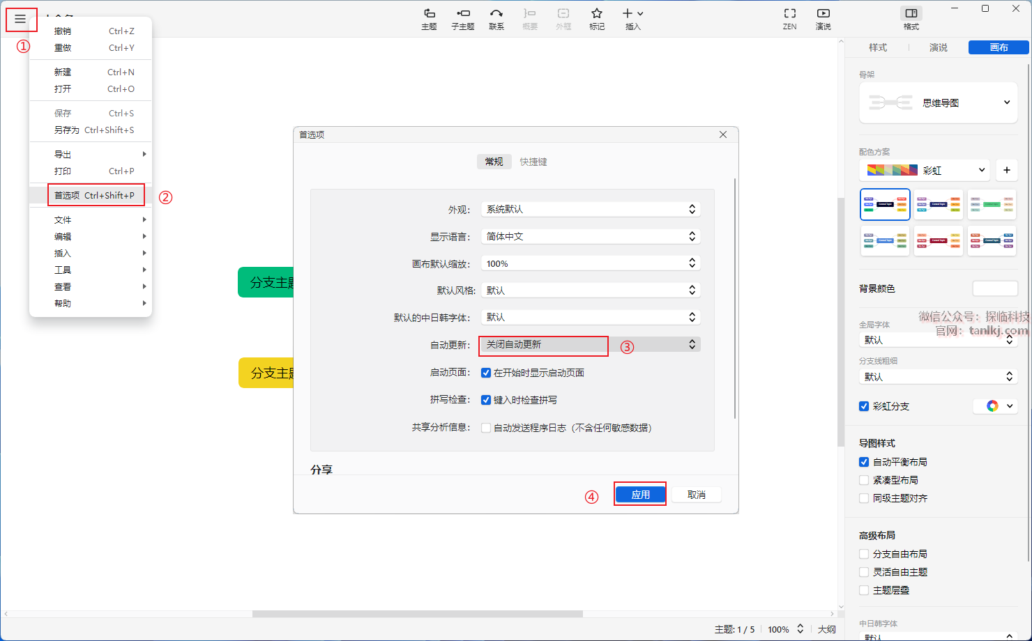 ③自动更新选项中选择【关闭自动更新】;