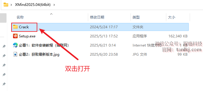 打开之前解压后的文件夹,双击打开文件夹【Crack】。