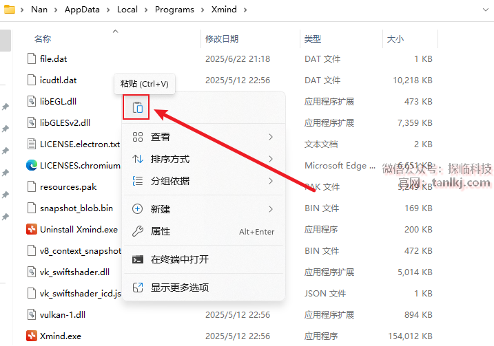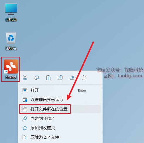 在桌面,右键软件【XMind】,点击【打开文件所在的位置】。