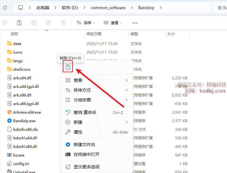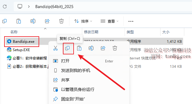 回到【步骤02】中打开的文件夹,复制文件【Bandizip】。