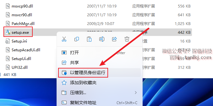 打开解压后的文件夹,双击打开文件夹【CAD2010】,右键程序【setup】,点击【以管理员身份运行】。