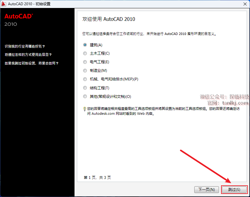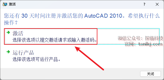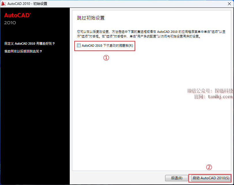 ①去掉勾选【AutoCAD 2010 下次启动时提醒我】;