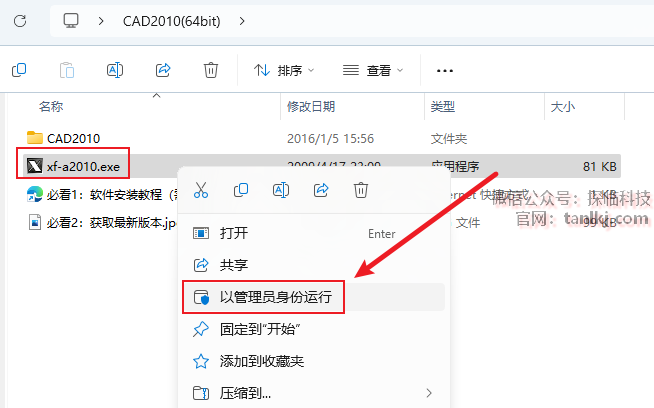 打开之前解压后的文件夹,右键程序【xf-a2010】,点击【以管理员身份运行】。