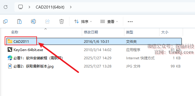 打开解压后的文件夹,双击打开文件夹【CAD2011】。