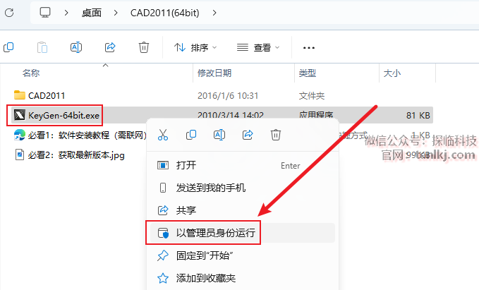打开之前解压后的文件夹,右键程序【KeyGen-64bit】,点击【以管理员身份运行】。