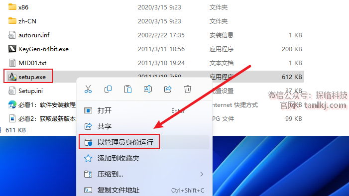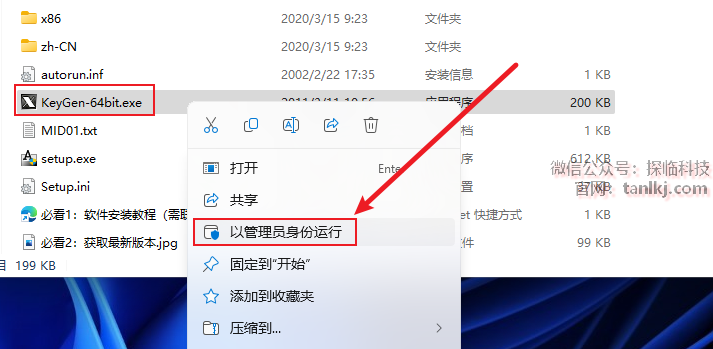打开之前解压后的文件夹,右键程序【KeyGen-64bit】,点击【以管理员身份运行】。