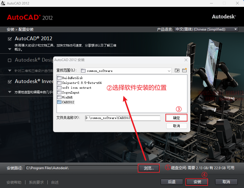 ②选择软件安装的位置,安装路径中不能包含任何中文字符;