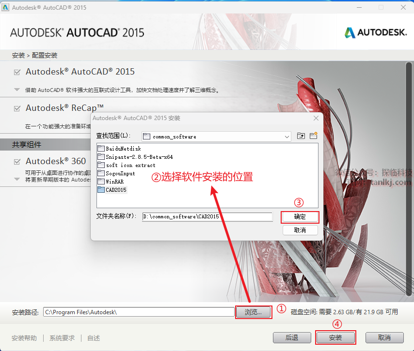 ②选择软件安装的位置,安装路径中不能包含任何中文字符;