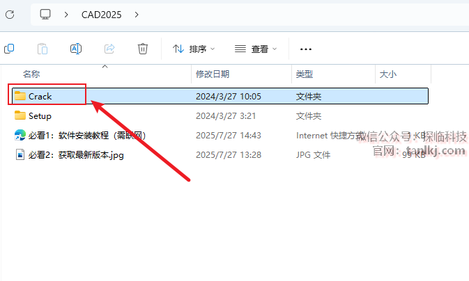 打开之前解压后的文件夹,双击打开文件夹【Crack】。