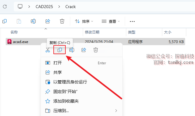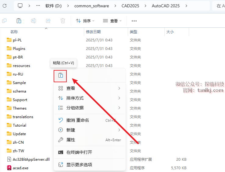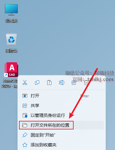 在桌面,右键软件【AutoCAD 2025】,点击【打开文件所在的位置】。