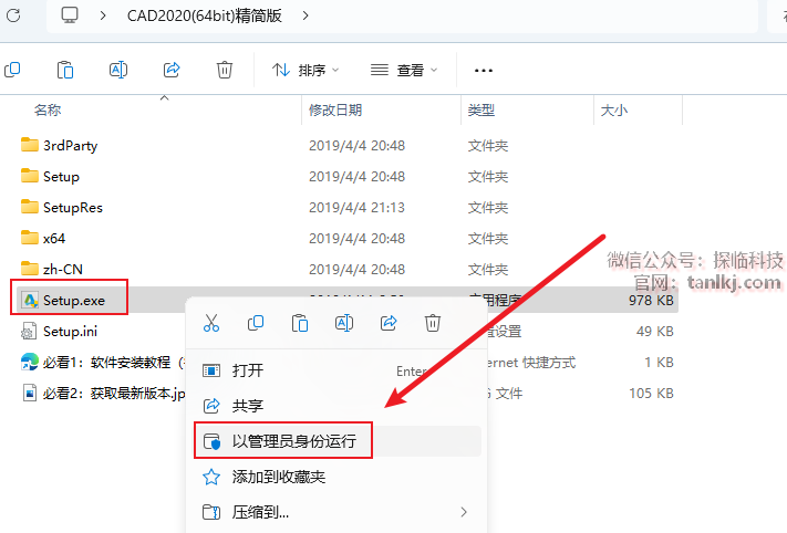 打开解压后的文件夹,右键程序【Setup】,点击【以管理员身份运行】。