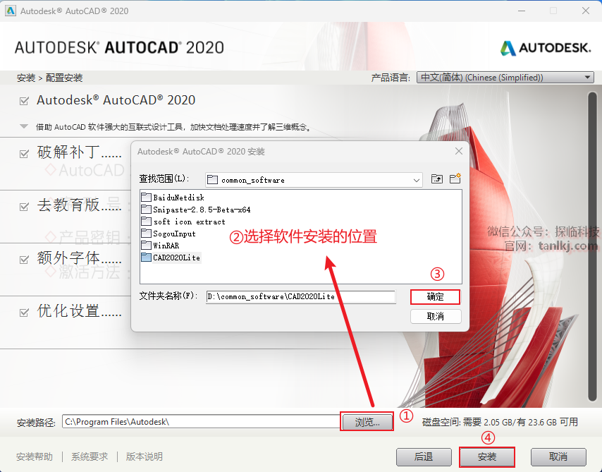 ②选择软件安装的位置,安装路径中不能包含任何中文字符;