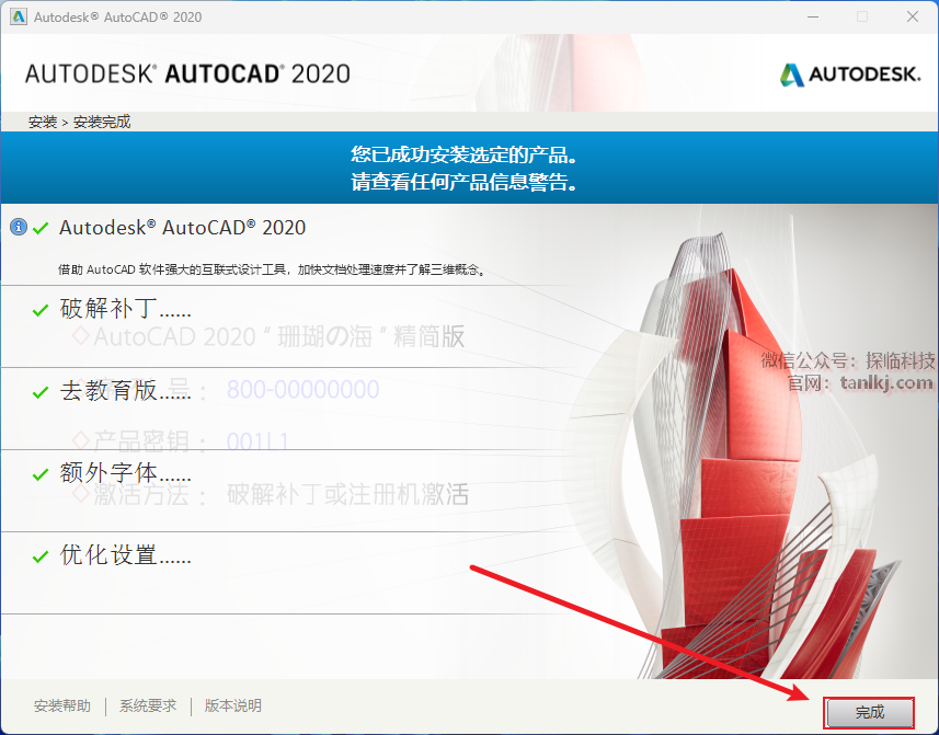 安装完成后,点击【完成】。