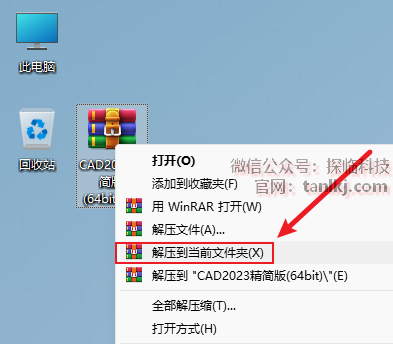 解压下载后的软件包。右键软件包,点击【解压到当前文件夹】(win11系统需先点击【显示更多选项】)。 (未安装解压软件可以点击此处查看:如何安装解压软件?)