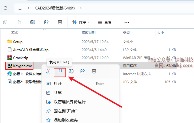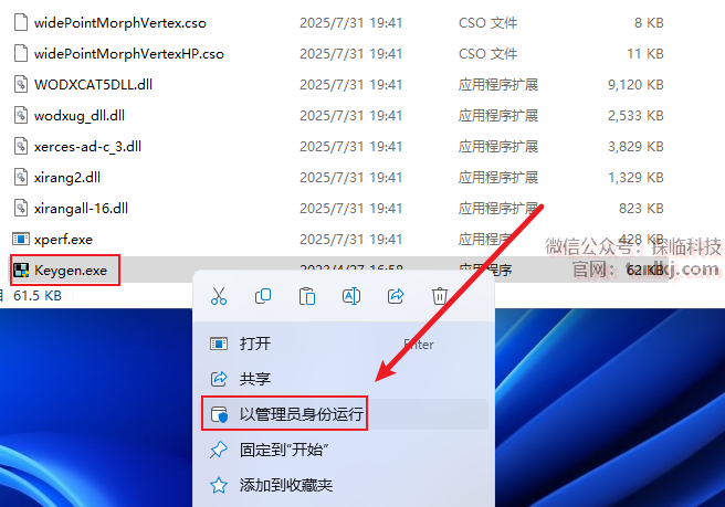 右键刚刚粘贴的文件【Keygen】,点击【以管理员身份运行】。