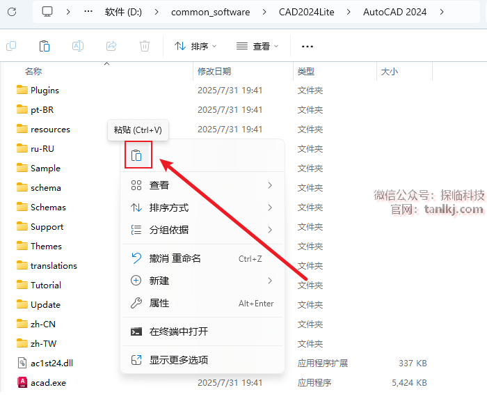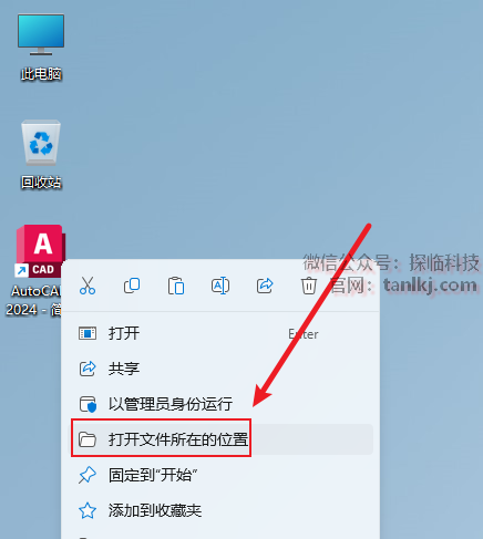 在桌面,右键软件【AutoCAD 2024】,点击【打开文件所在的位置】。