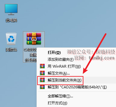 解压下载后的软件包。右键软件包,点击【解压到当前文件夹】(win11系统需先点击【显示更多选项】)。 (未安装解压软件可以点击此处查看:如何安装解压软件?)