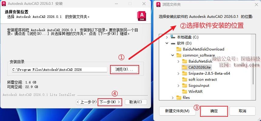 ②选择软件安装的位置,安装路径中不能包含任何中文字符;