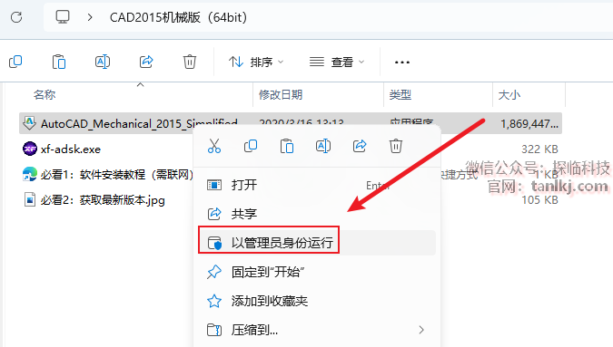 打开解压后的文件夹,右键程序【AutoCAD_Mechanical…】,点击【以管理员身份运行】。