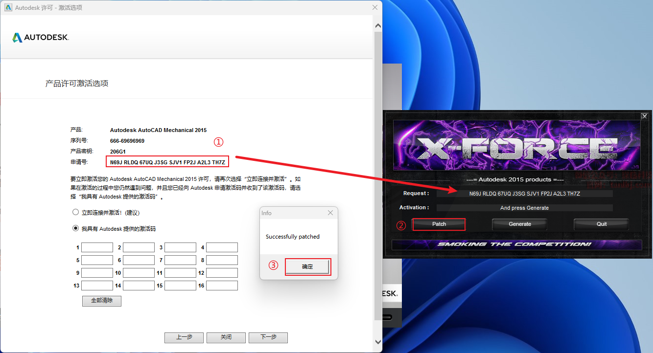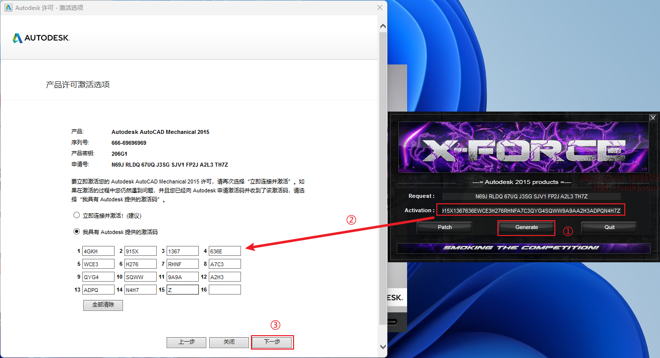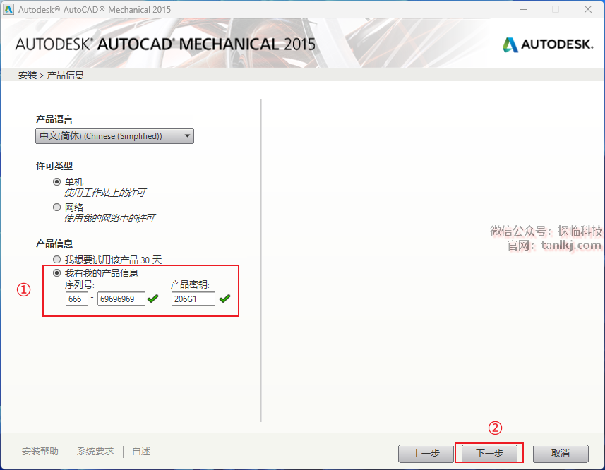 ①输入序列号和产品密钥