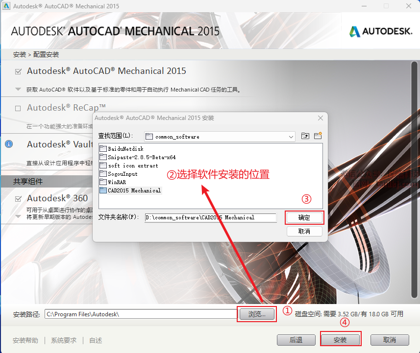 ②选择软件安装的位置,安装路径中不能有任何中文字符;