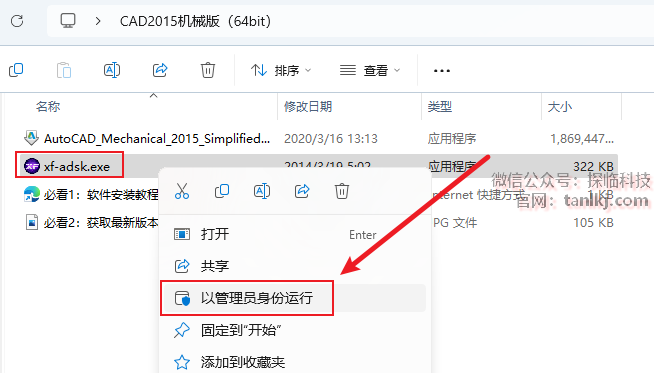 打开之前解压后的文件夹,右键程序【xf-adsk】,点击【以管理员身份运行】。