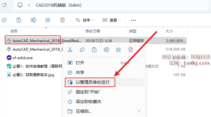打开解压后的文件夹,右键程序【AutoCAD_Mechanical…】,点击【以管理员身份运行】。