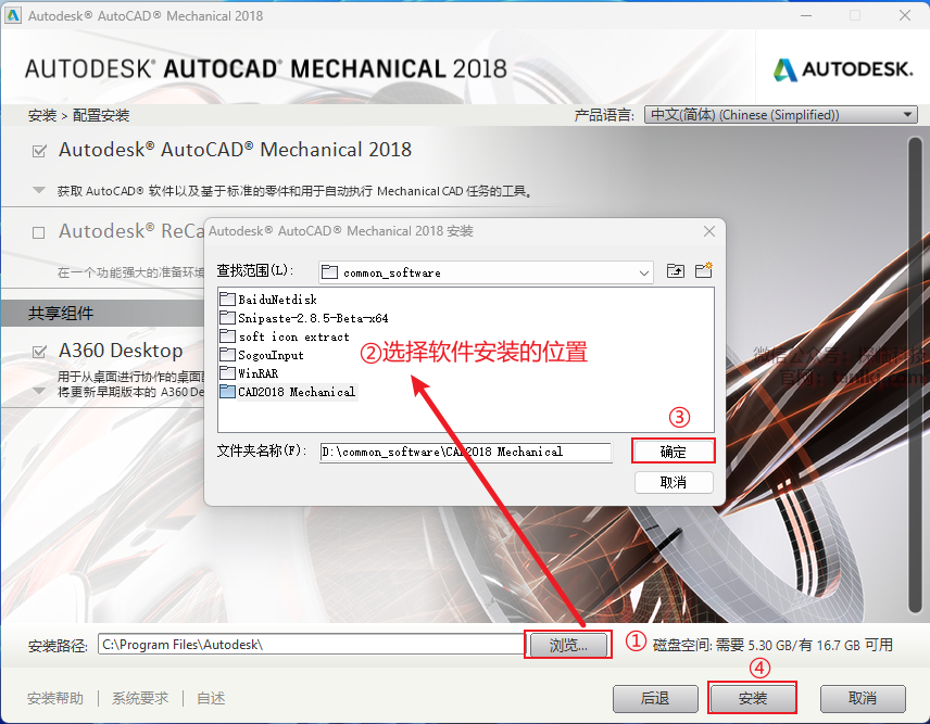 ②选择软件安装的位置,安装路径中不能包含任何中文字符;