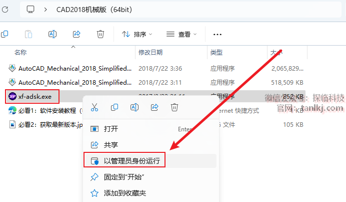 打开之前解压后的文件夹,右键程序【xf-adsk】,点击【以管理员身份运行】。