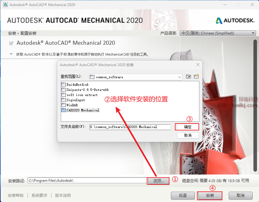 ②选择软件安装的位置,安装路径中不能包含任何中文字符;
