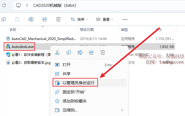 打开之前解压后的文件夹,右键程序【Autodesk】,点击【以管理员身份运行】。