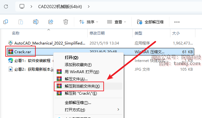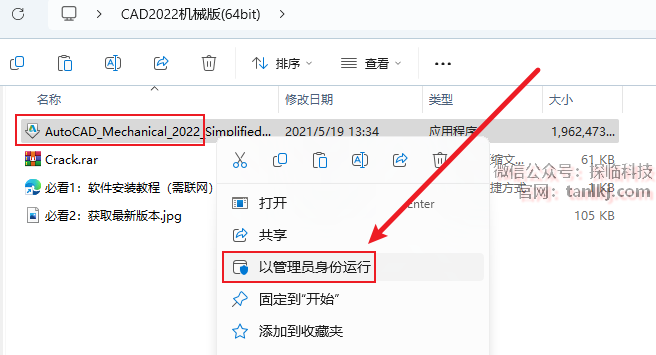 打开解压后的文件夹,右键程序【AutoCAD_Mechanical…】,点击【以管理员身份运行】。