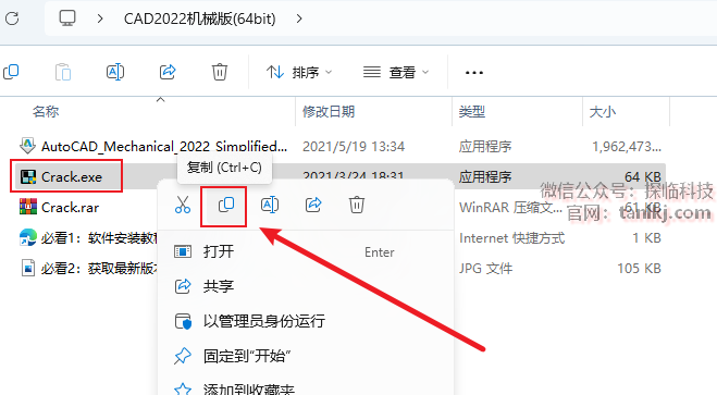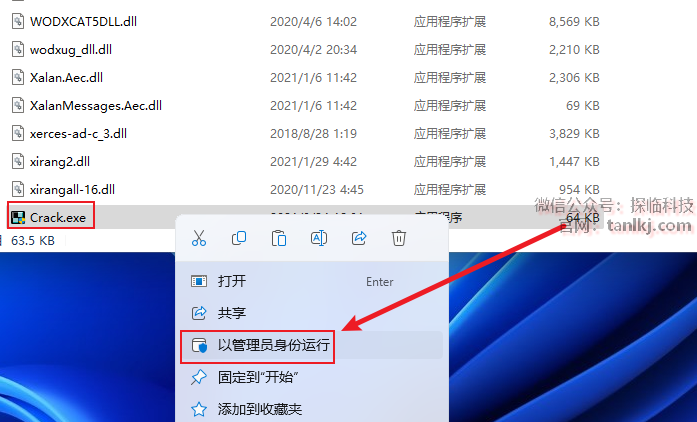 右键刚刚粘贴的文件【Crack】,点击【以管理员身份运行】。
