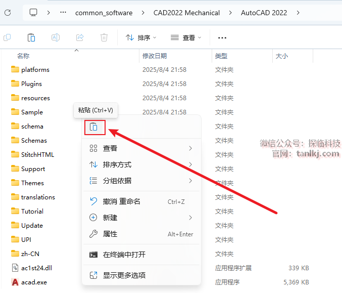 在弹出来的文件夹内,粘贴刚刚复制的文件。