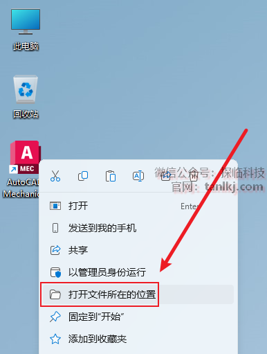 在桌面,右键软件【AutoCAD Mechanical…】,点击【打开文件所在的位置】。
