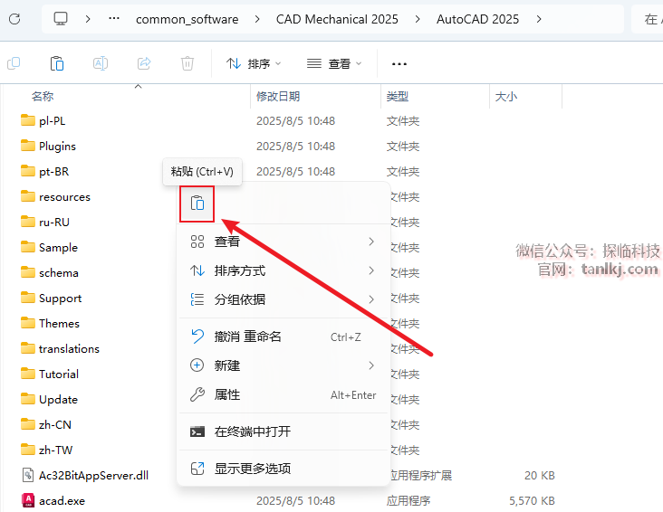 在弹出来的文件夹内,粘贴刚刚复制的文件。