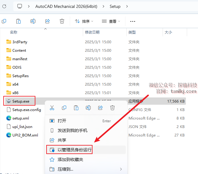 右键程序【Setup】,点击【以管理员身份运行】。